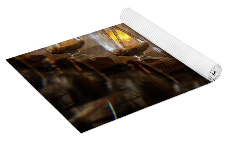 Our premium yoga mats are 24" wide x 72" tall x 0.25" thick and made from natural rubber with a blended microfiber top surface. The top of the mat has the image printed on it, and the back is solid black with textured dimples for better floor grip.